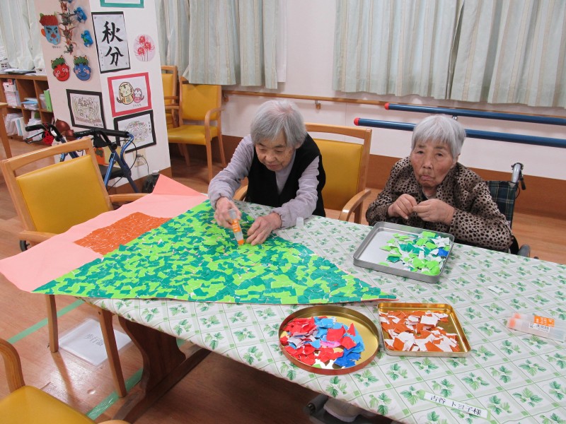 本日は創作レクリエーションとしては貼り絵を実施致しました。